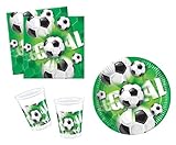 Shop für 40 tlg. Set Pappteller + Serviette + Becher Fussball grün für EM und WM Teller Küche Essen Kinder Kindergarten Pappe Schule Geschirr Kindergeschirr Kindergeburtstag Party Deko Dekoration Kinderparty Junge Kind rund Einweg Kinderfest